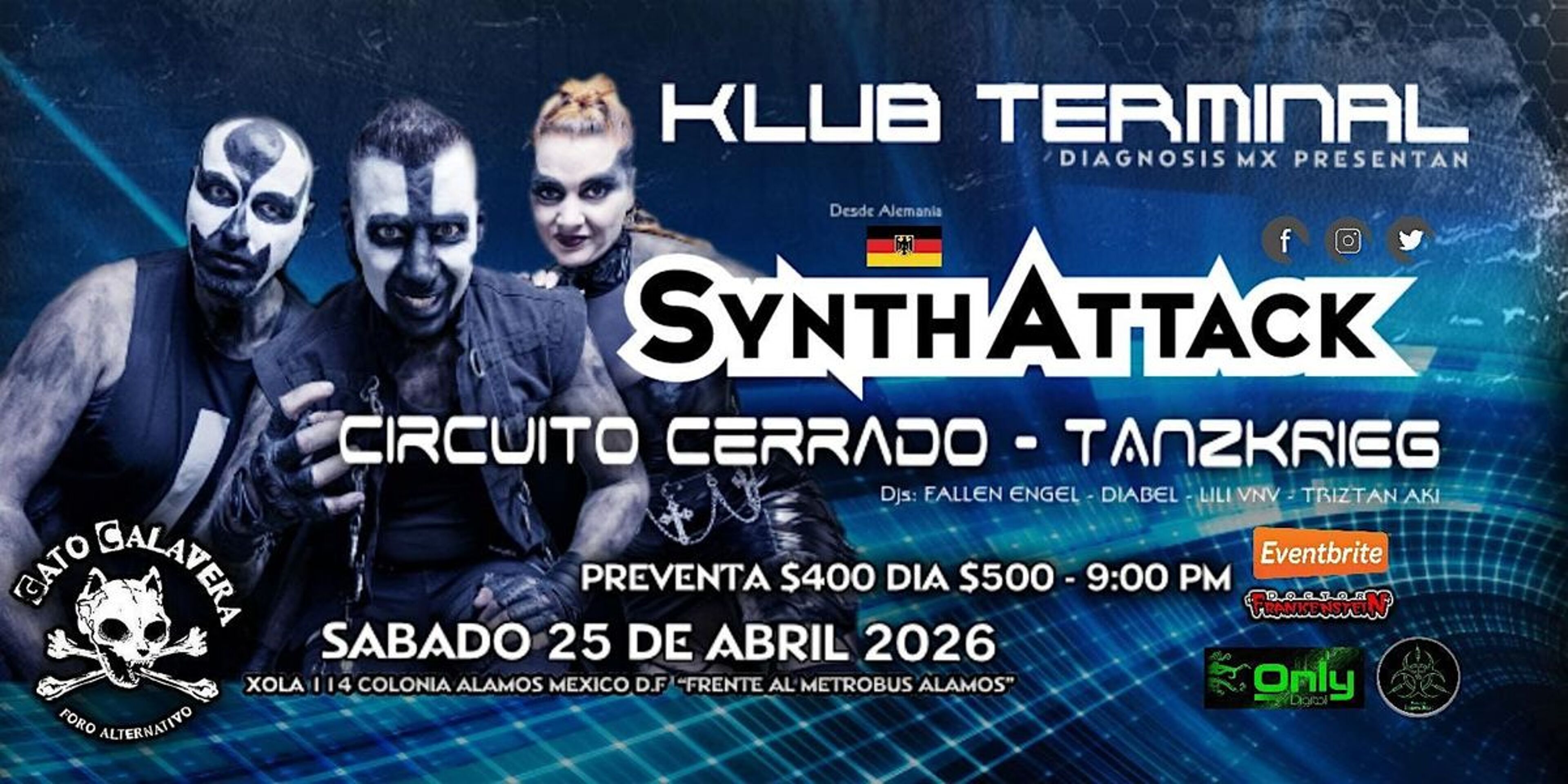 SYNTHATTACK En CDMX Sabado 25 de Abril 2026EventbriteGato calaveraDelegación Benito Juárez, CDMXAbr 25, 2026