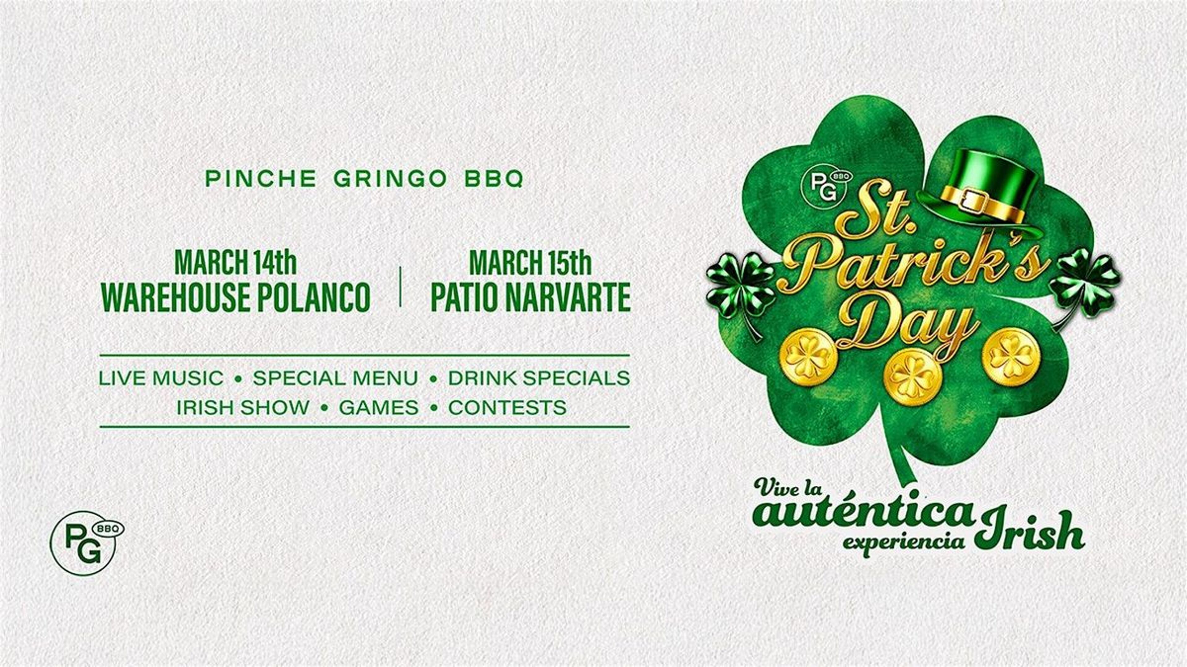 ST. Patrick´ s Day Party Warehouse - PolancoEventbritePinche Gringo BBQ WarehouseCiudad de México, CDMXMar 14, 2026