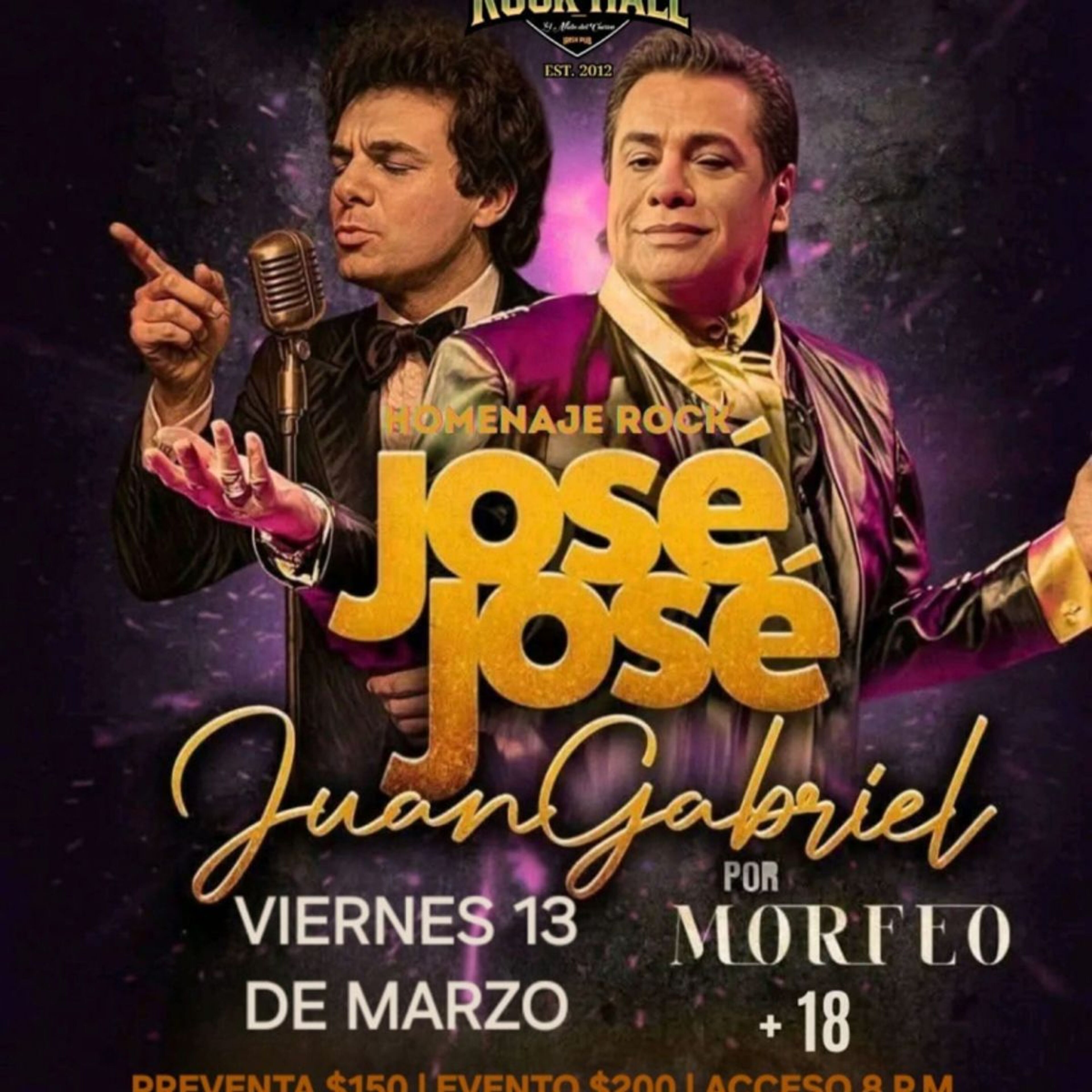 TRIBUTO A DOS GRANDES JUAN GABRIEL Y JOSÉ JOSÉ VERSION ROCK by MORFEO (+18)PasslineAuditorio Manuel Fernando SotoTulancingo, HGOMar 13, 2026