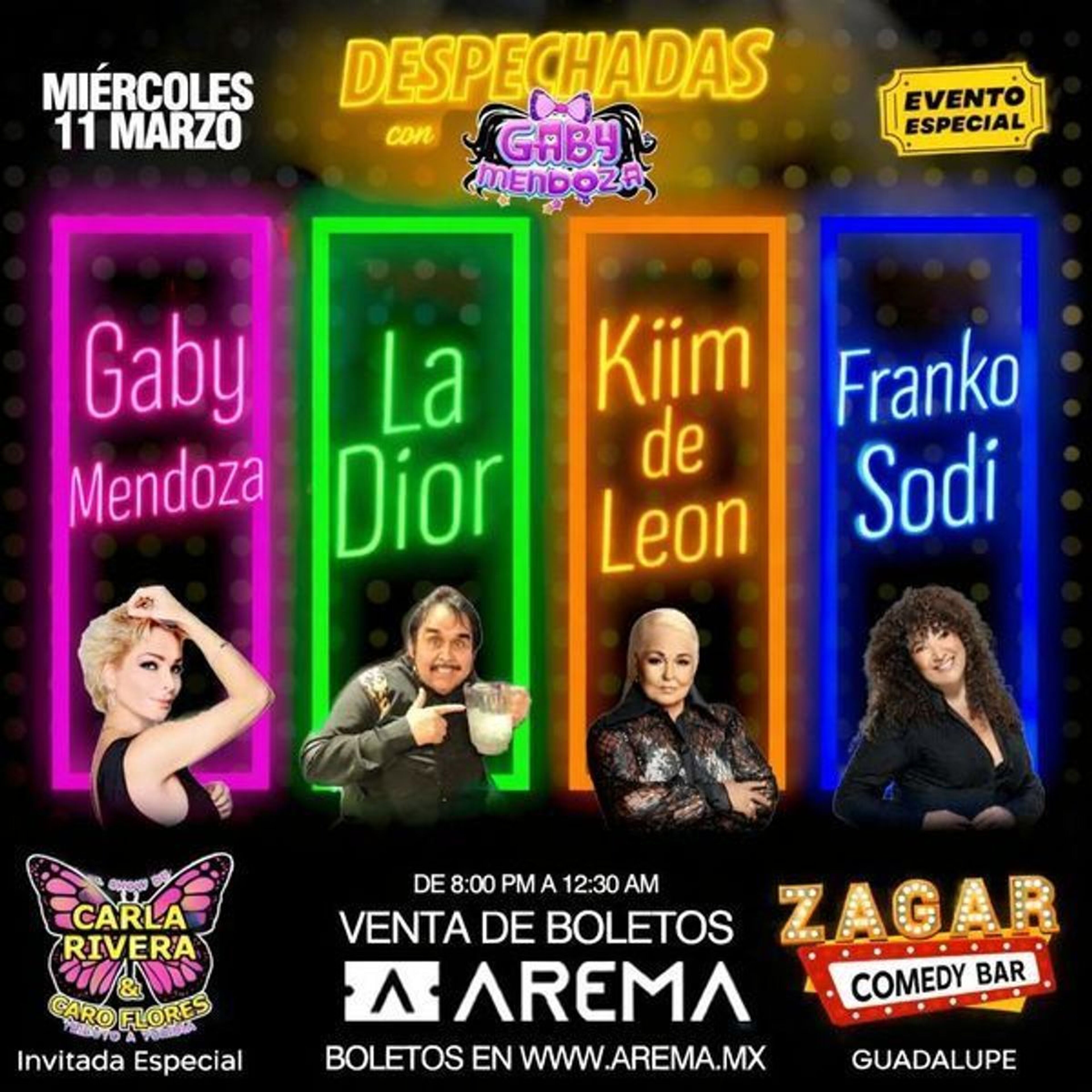 Despechadas con Gaby Mendoza en Zagar Comedy Bar GuadalupeAremaZagar Comedy Bar GuadalupeGuadalupe, NLEMar 11, 2026