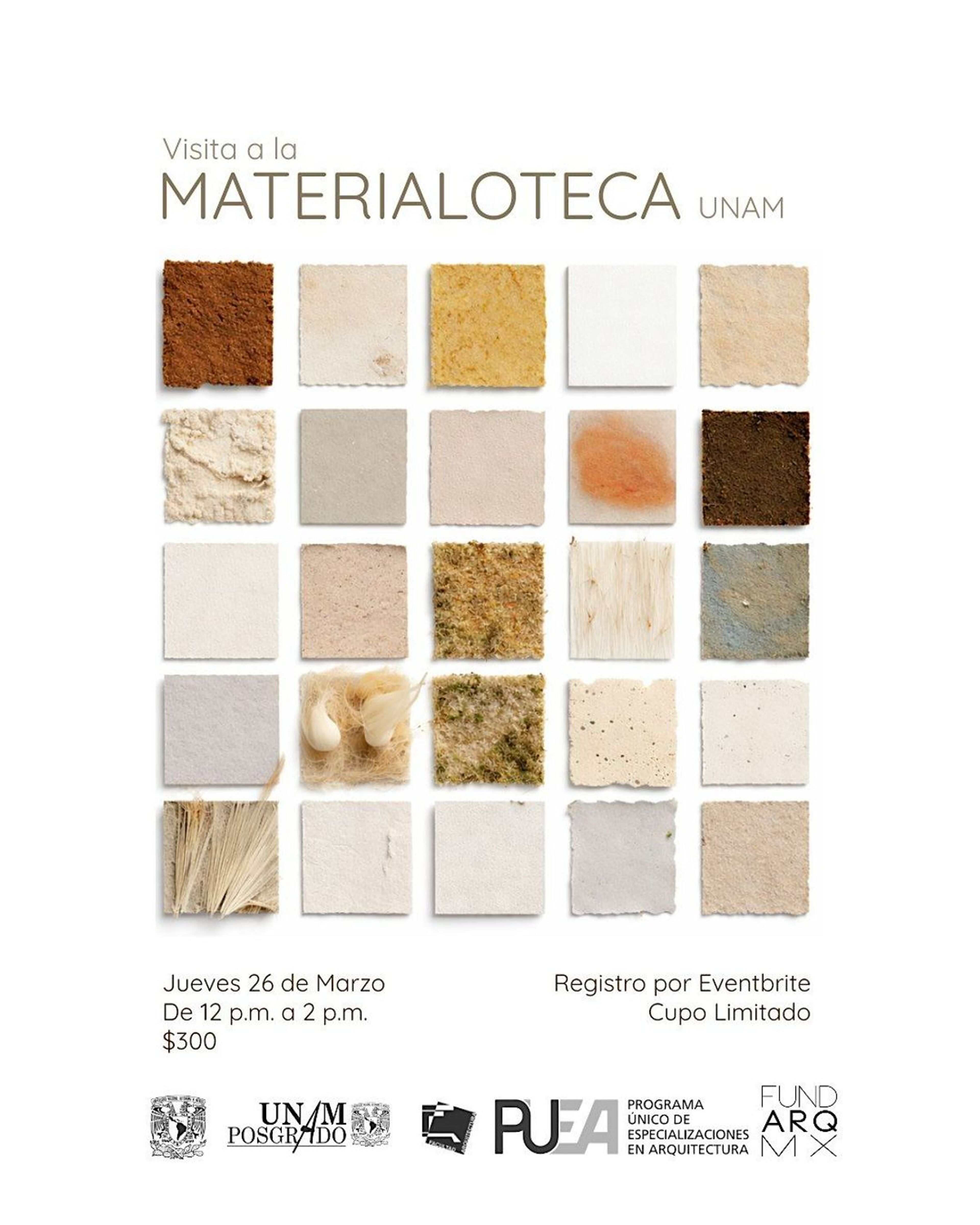 VISITA A LA MATERIALOTECA UNAM CON FUNDARQMXEventbriteAvenida del AspiranteCiudad de México, CDMXMar 26, 2026