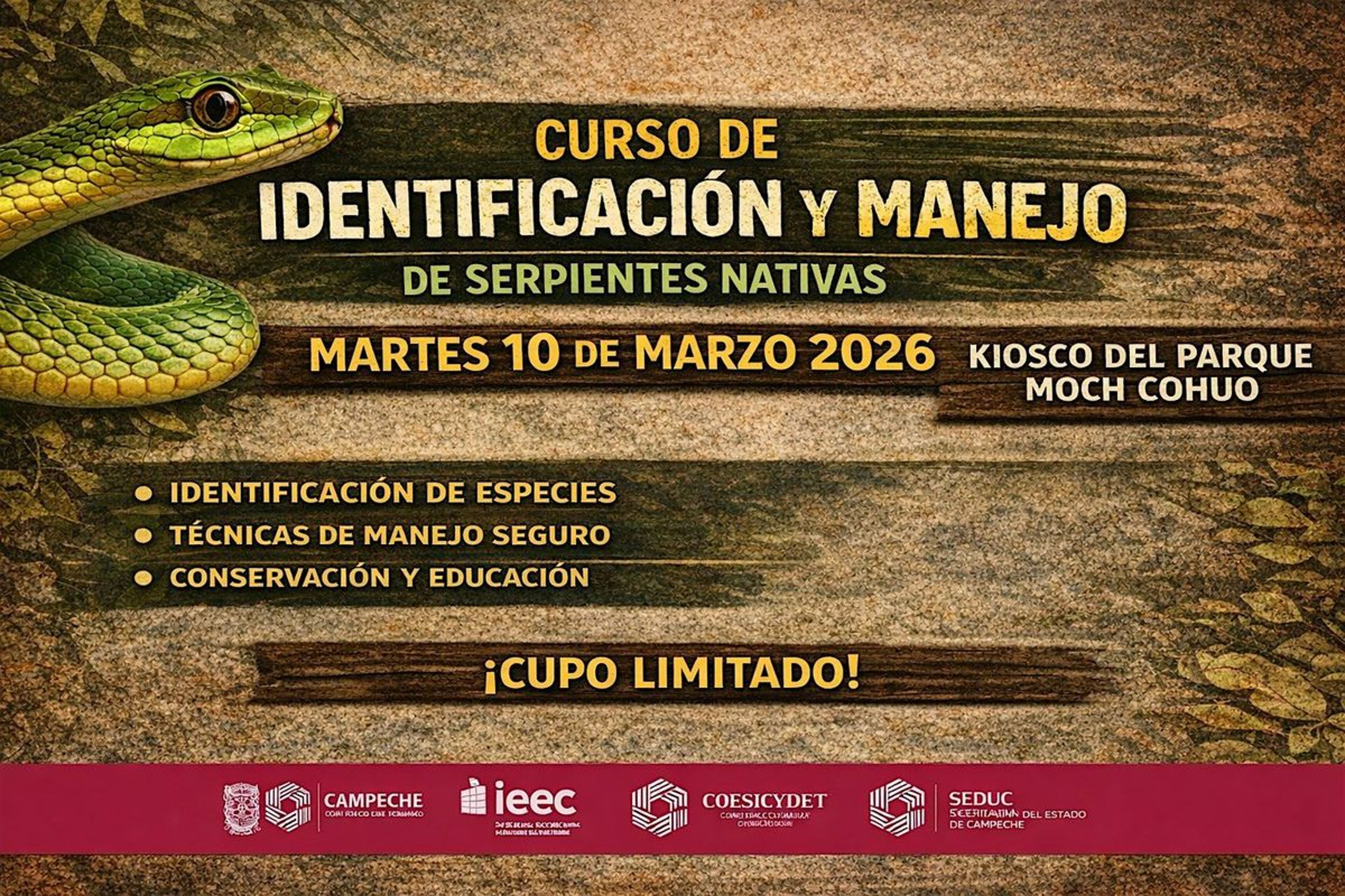 Curso basico de identificacion y manejo de serpientes nativasEventbriteQuiosco del Parque de Moch CouohSan Francisco de Campeche, CAMPMar 10, 2026