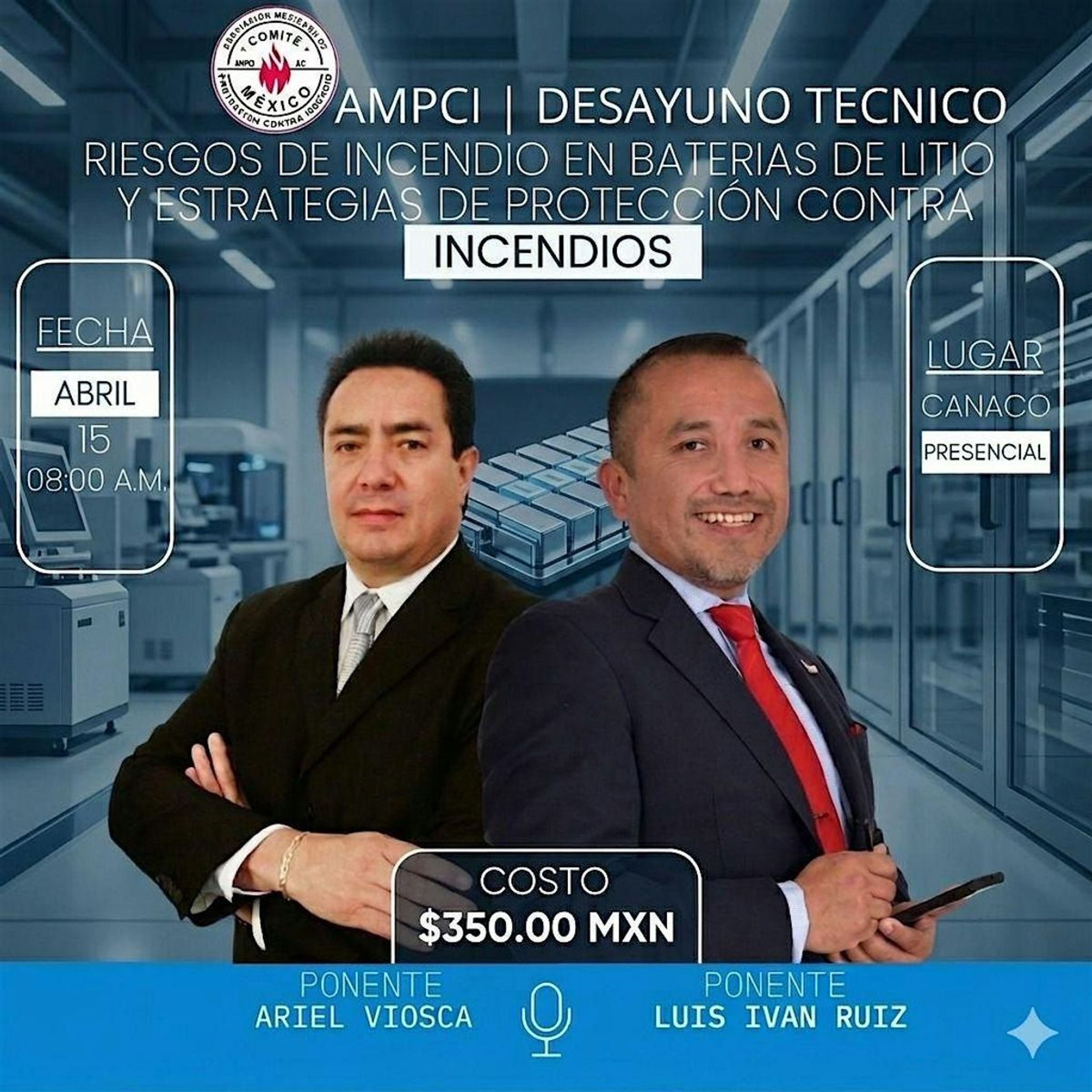 RIESGOS DE INCENDIO EN BATERIAS DE LITIO Y ESTRATEGIAS DE PROTECCIONEventbriteCámara Nacional de ComercioCiudad de México, CDMXAbr 15, 2026