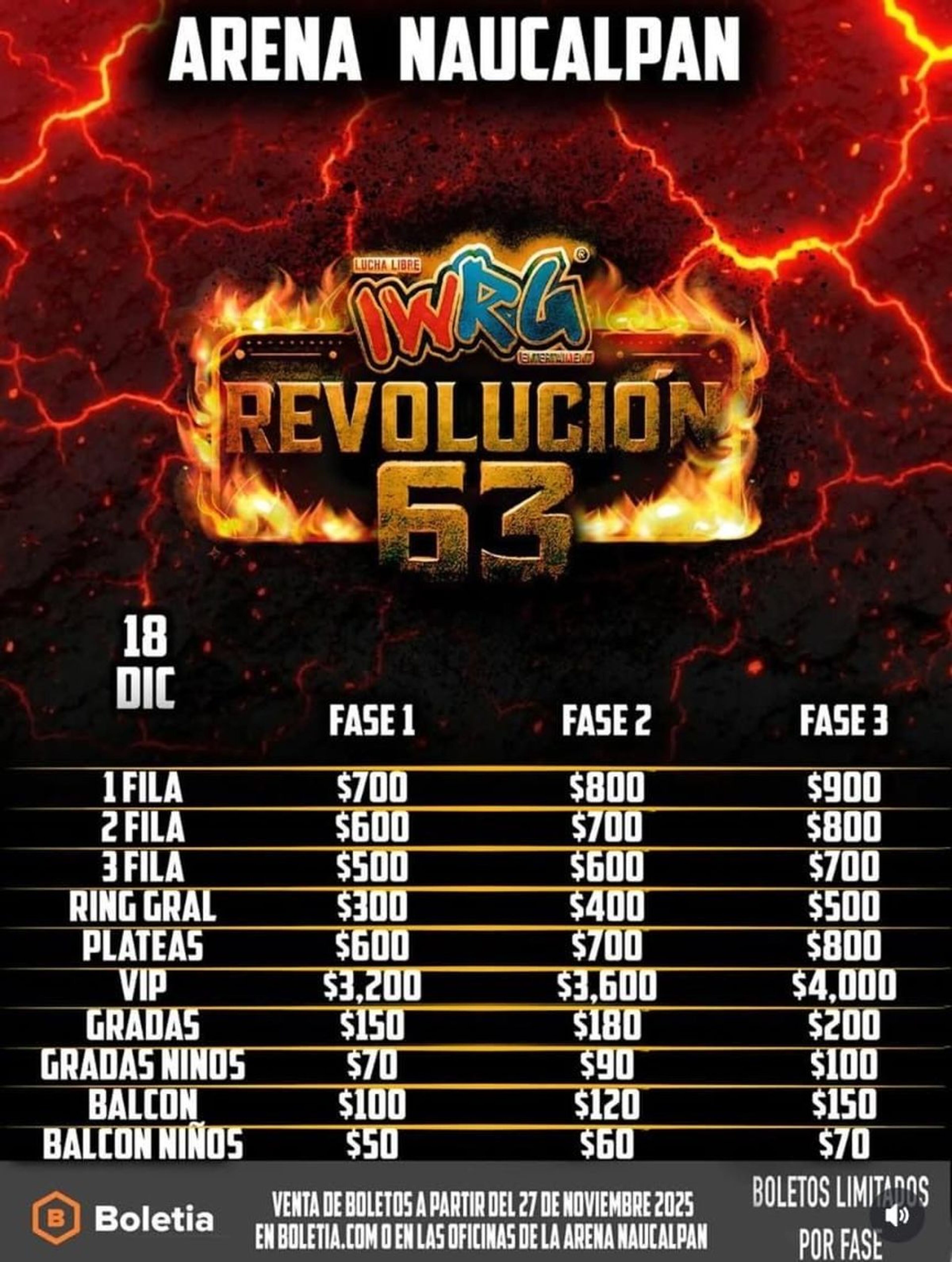 Lucha Libre IWRG Revolución 63 Diciembre 2025BoletiaArena Naucalpan IWRGNaucalpan de Juárez, MEXDic 18, 2025