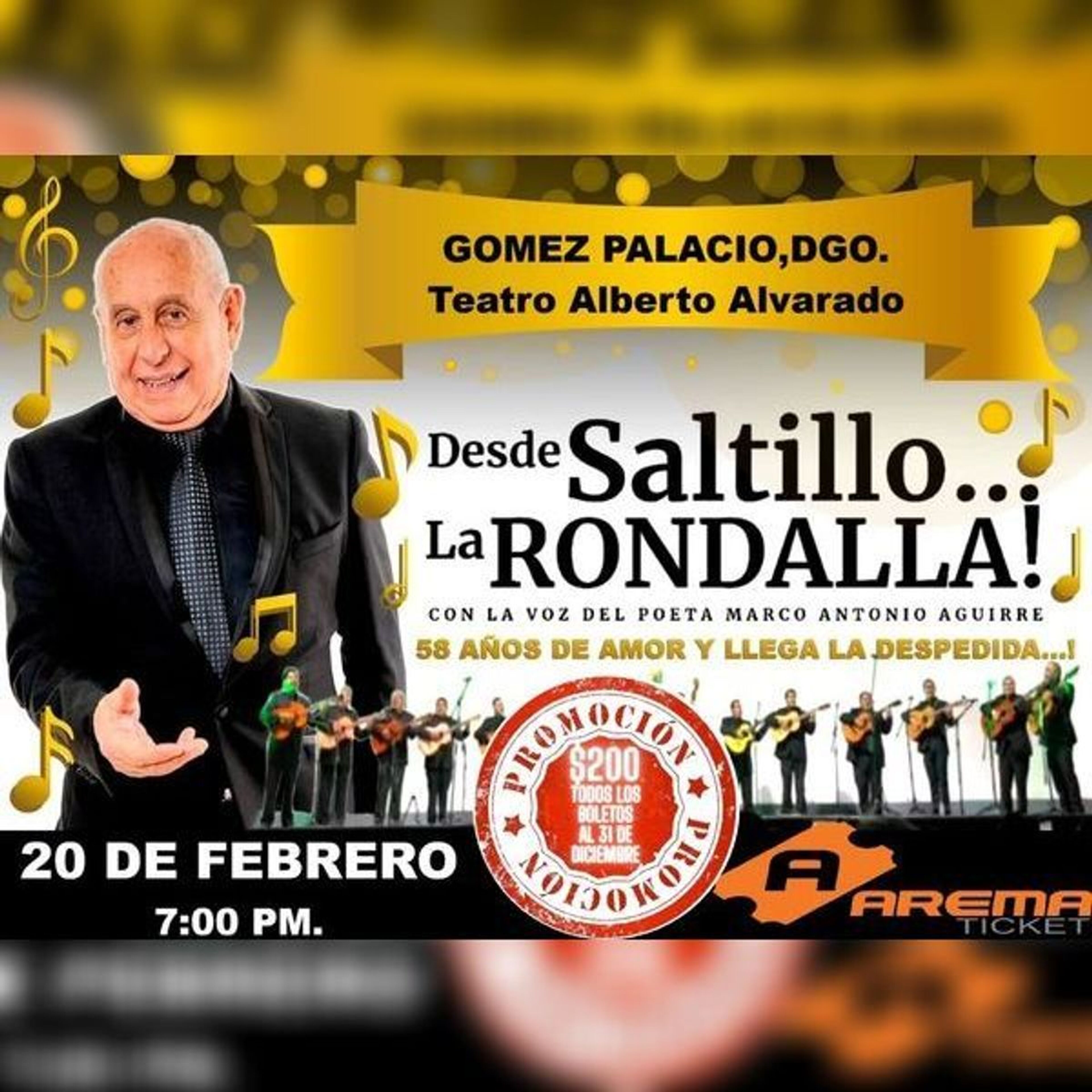 Desde Saltillo La Rondalla! La gira del Adios! en Gomez PalacioAremaTeatro Alberto M. AlvaradoGómez Palacio, DGO, DGOFeb 20, 2026