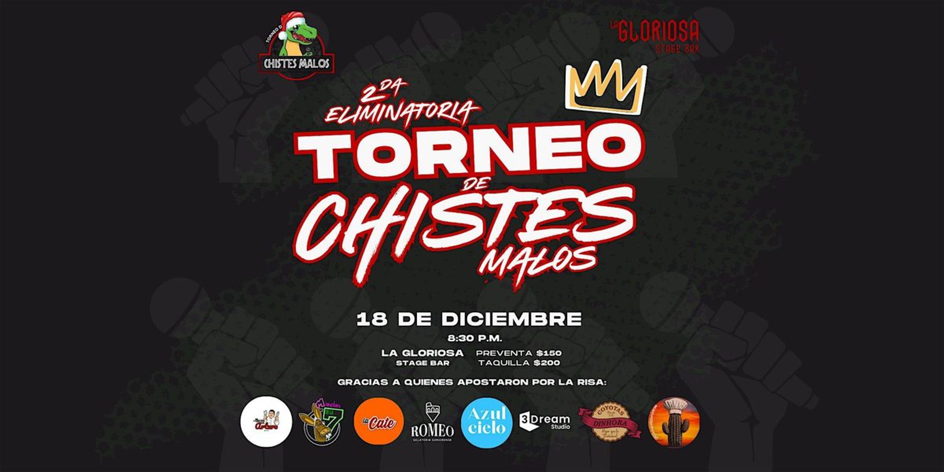 ¡Bienvenidos a la 2da Eliminatoria del Torneo de Chistes Malos – Sonora en La Gloriosa Stage Bar!