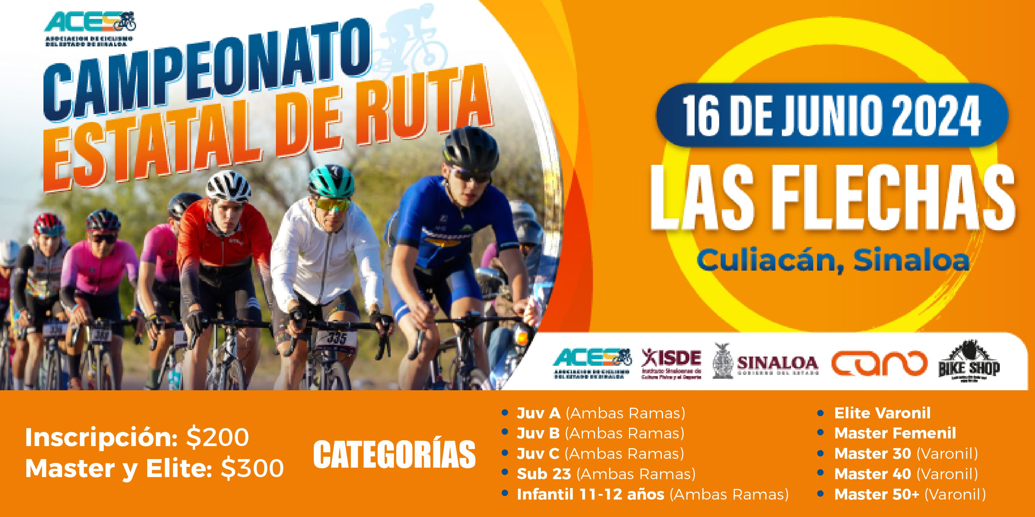La Asociación de Ciclismo del Estado de Sinaloa convoca al Campeonato Estatal de ruta 2024, donde se otorgará jersey de campeón en cada categoría.