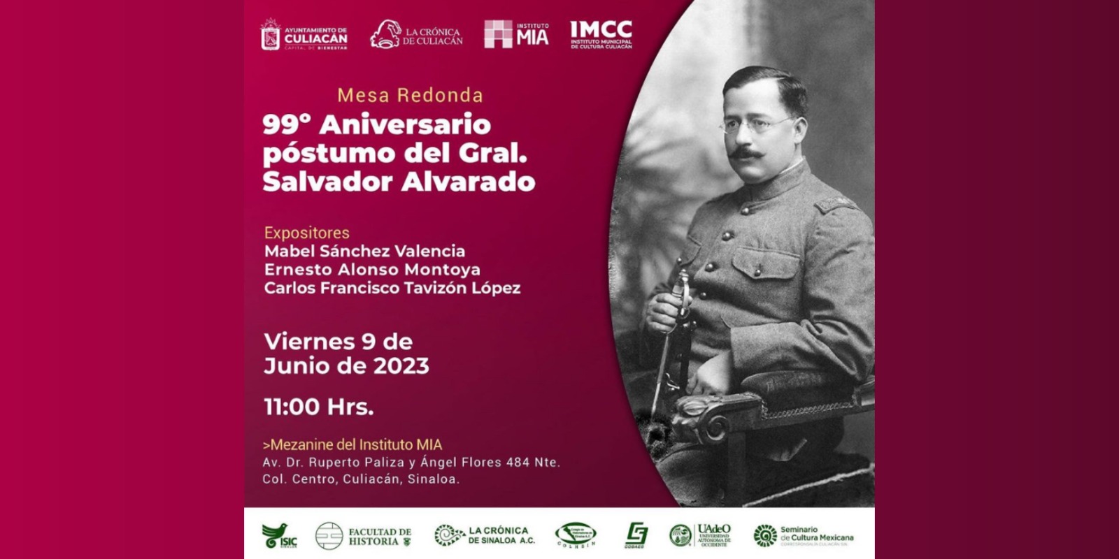 Te invitamos este próximo Viernes 09 de junio, en el Mezanine del Instituto MIA, a la conferencia sobre el 99º aniversario del Gral. Salvador Alvarado✨