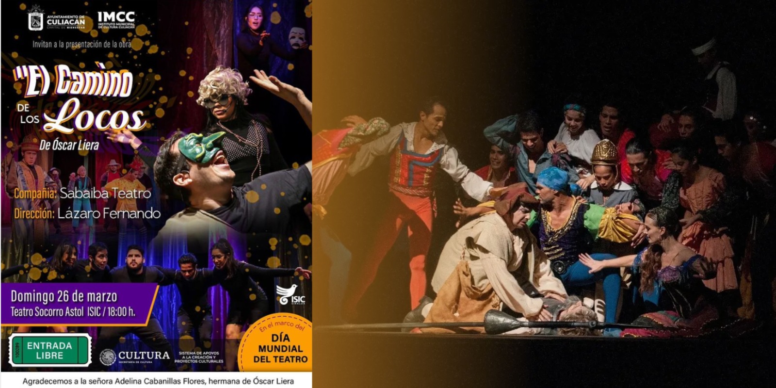 En celebración del marco del día mundial del teatro, tenemos para ti la presentación de la obra “El camino de los Locos” de Óscar Liera, dirigida por Lázaro Fernando. Entrada totalmente GRATIS 🎟️🎭