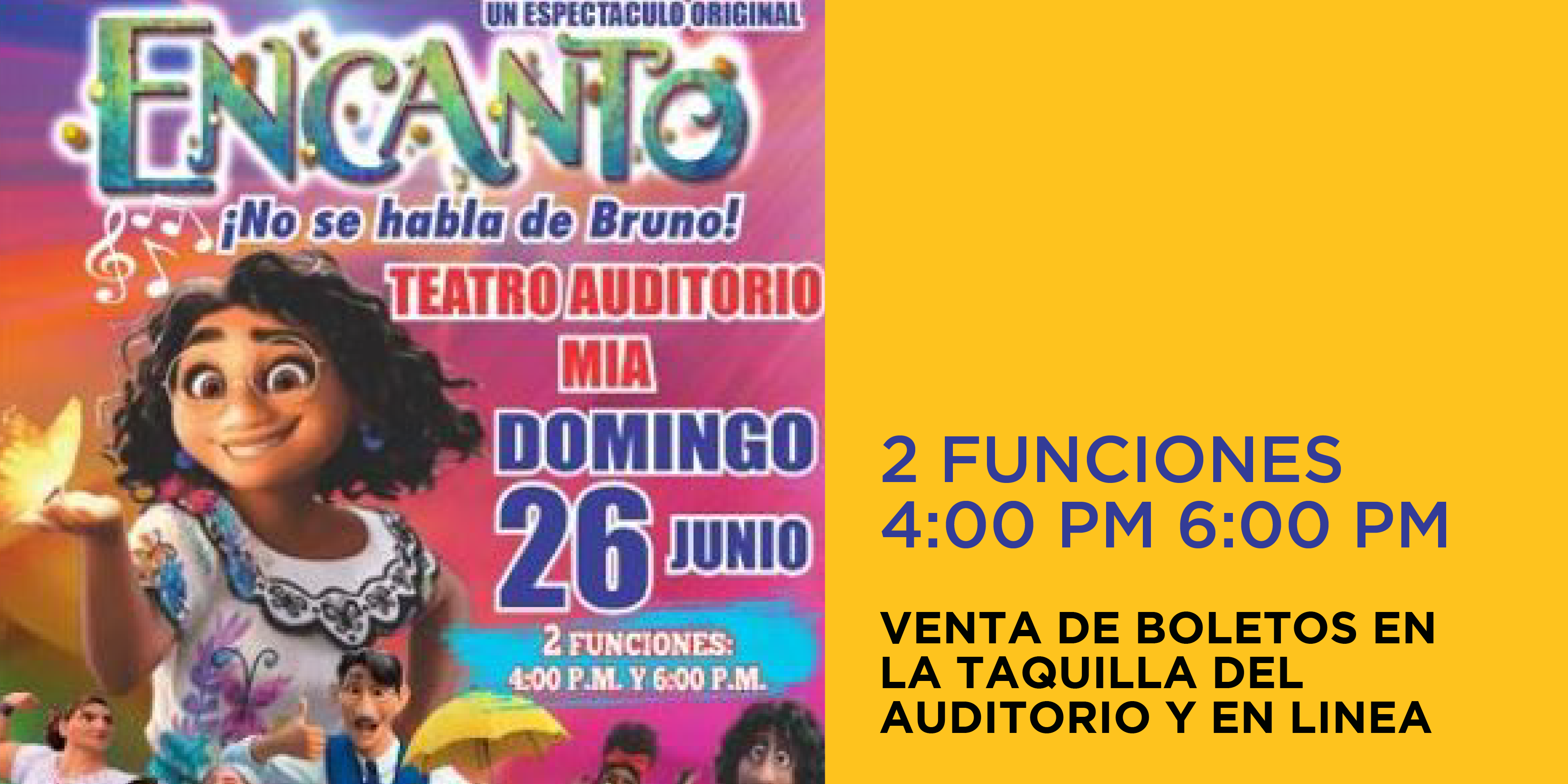 Asiste este 26 de Junio al Teatro MIA, en donde podrás disfrutar del gran espectáculo de Encanto, la película, hecha musical