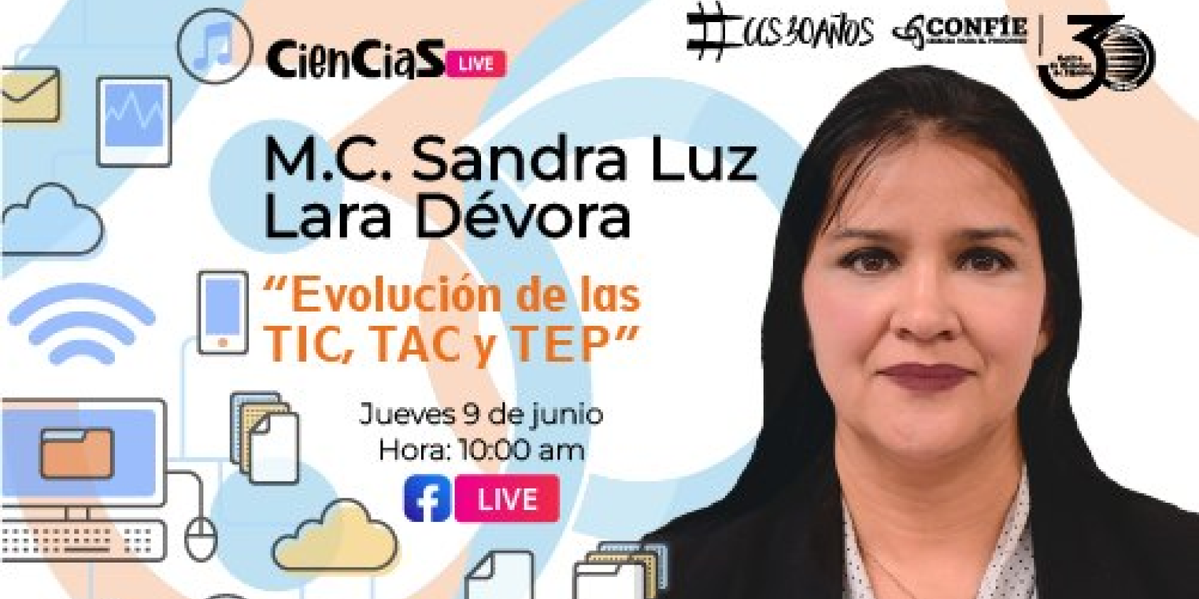 CienCiaS live presenta al MC. Sandra Luz Lara en el ciclo de conferencias por Facebook live para festejar el 30 aniversario del Centro de Ciencias de Sinaloa