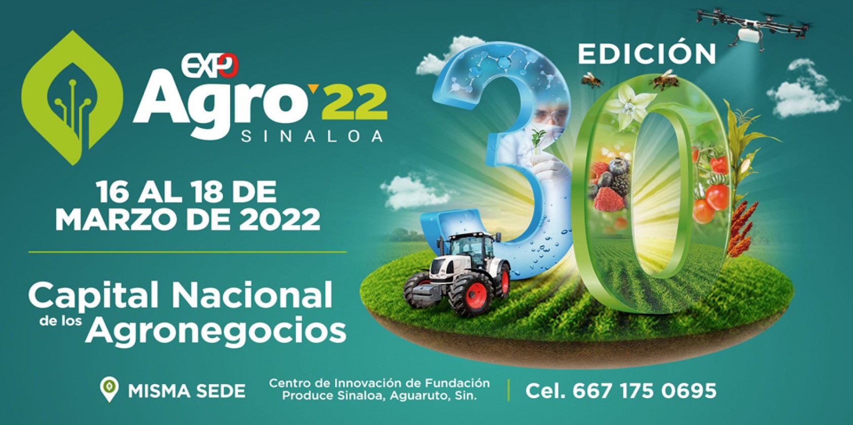 ExpoAgro se llevará a cabo en el Centro de Innovación de Fundación Produce Sinaloa ubicado en Aguaruto, Culiacán, Sinaloa.
