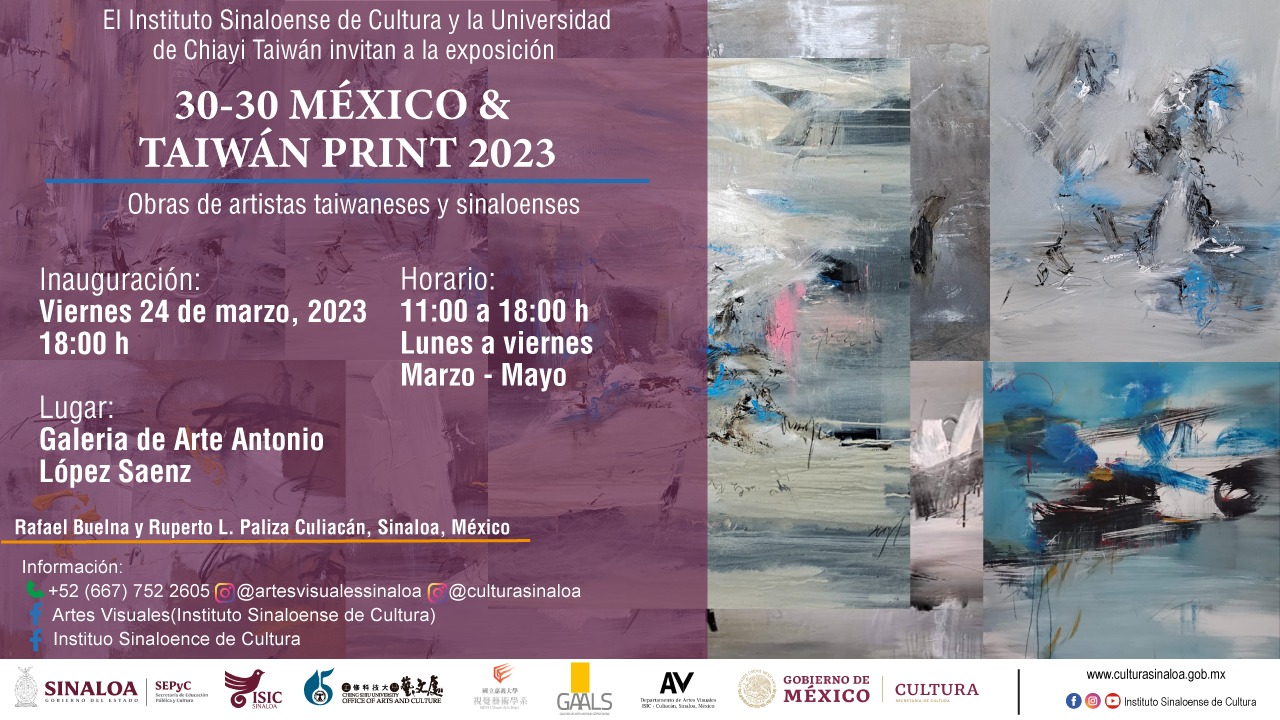 El próximo viernes 24 de marzo a las 18:00 horas será inaugurada, en las instalaciones de la Galería Arte Antonio López Sáenz (GAALS), del Instituto Sinaloense de Cultura, la exposición “30-30 México& Taiwán Print”, con obra de 66 artistas, 31 taiwaneses y 35 artistas sinaloenses, y para integrarla se lanzó una convocatoria binacional.