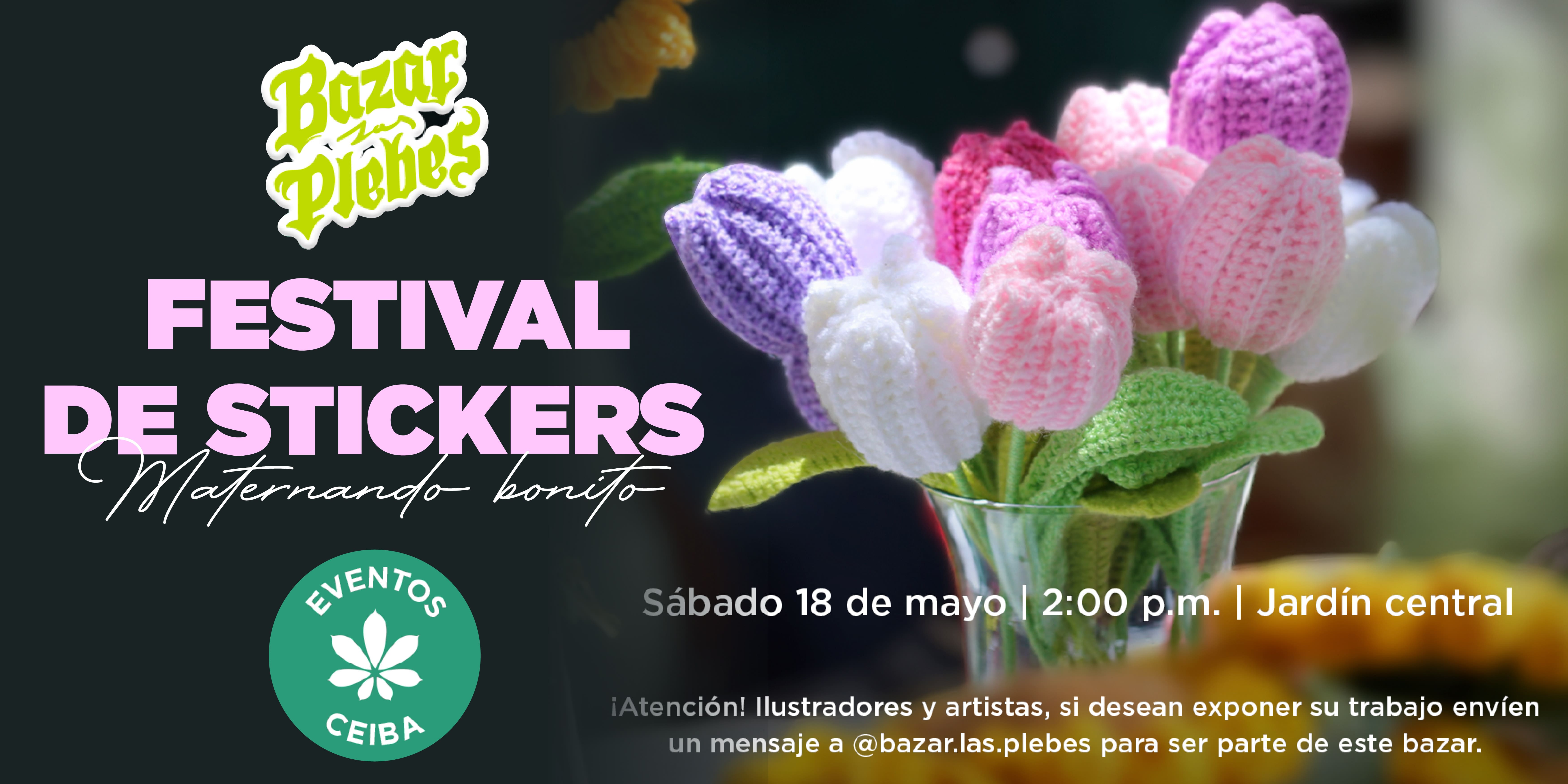 Este próximo sábado 18 de mayo, tendremos un bazar de stickers con @bazar.las.plebes ¿te gustaría formar parte de este evento? ¡envíales un mensaje! y comparte tu talento con la comunidad que visita CEIBA.