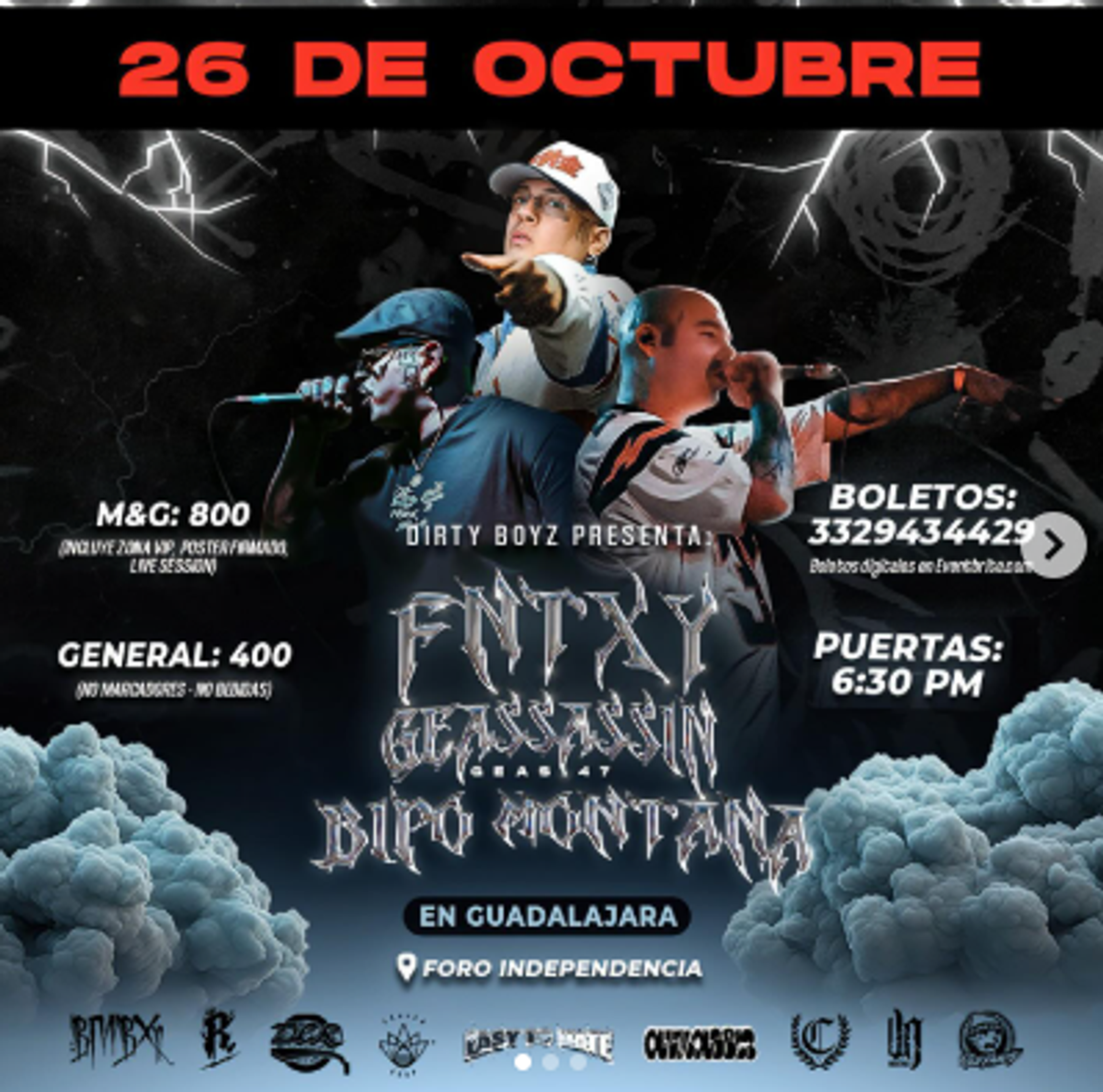 La calle se enciende en Guadalajara con la llegada de Fntxy, Geassassin y Bipo Montana, tres referentes del rap mexicano que harán vibrar el Foro Independencia con barras, beats y energía pura. Una noche de hip hop real, sin filtros, con el poder de los colectivos más influyentes de la escena.