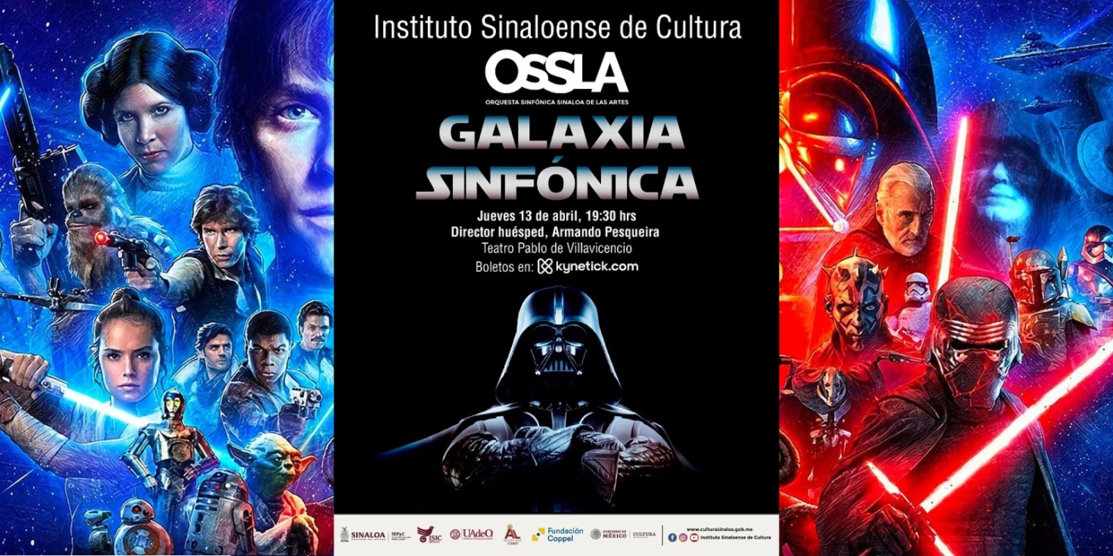 La Orquesta Sinfónica Sinaloa de las Artes vuelve a la carga esta Semana de Pascua, el jueves 13 de abril a las 19:30 horas, ahora con el programa "Galaxia sinfónica", con música de la saga fílmica "La guerra de las galaxias", en la que se tendrá como director huésped al Mtro. Armando Pesqueira.