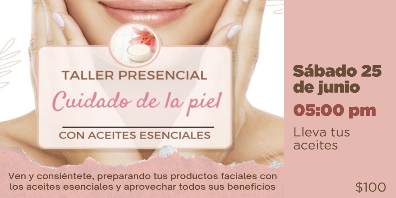 Si quieres aprender más sobre el cuidado de la piel con aceites esenciales este taller es para ti.