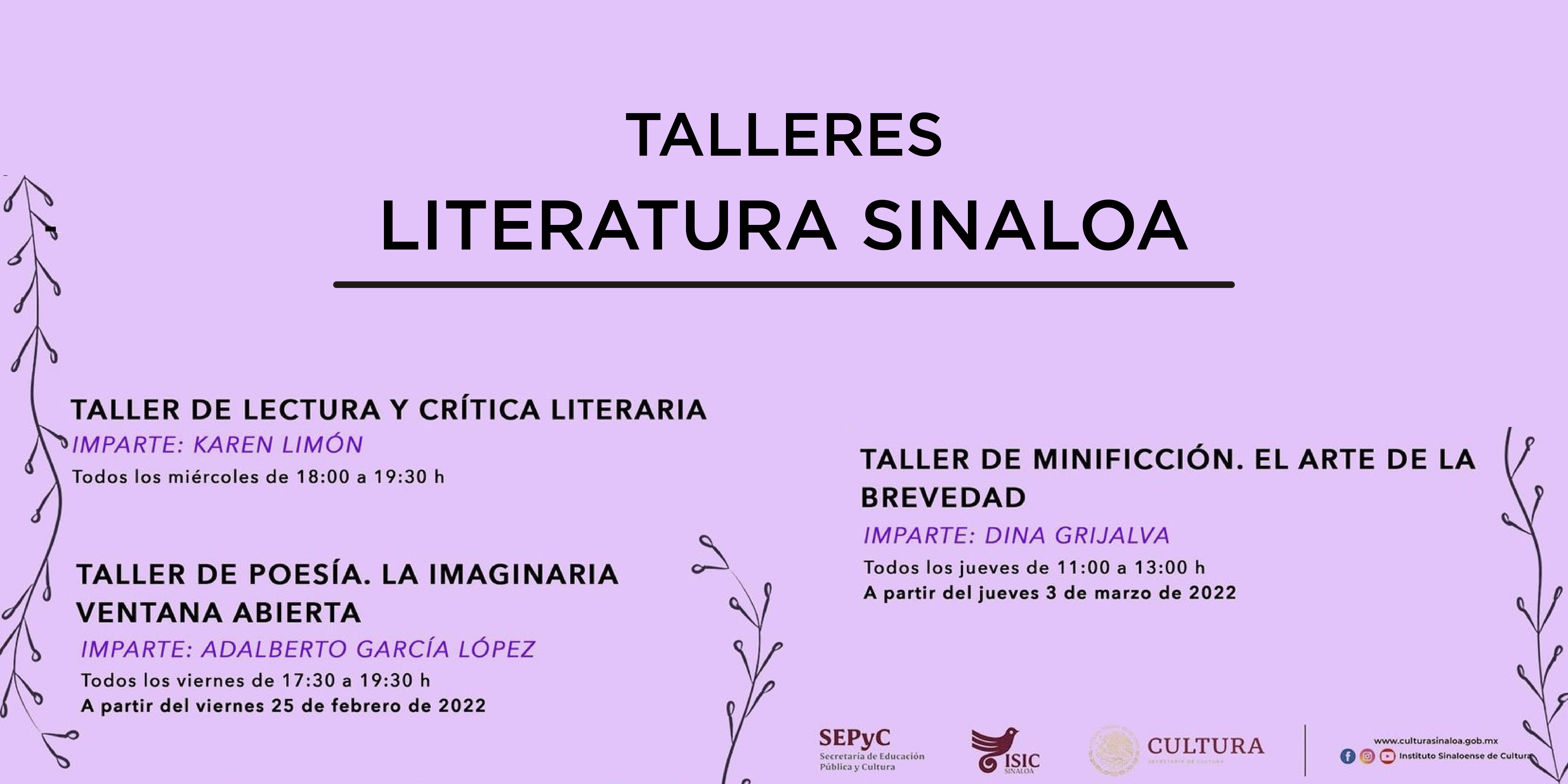 Conoce los talleres que estaremos impartiendo en Literatura Sinaloa, las actividades se llevarán a cabo en la Sala de Arte Joven, este taller será impartido por Adalberto García López